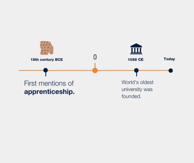 Long before universities and diplomas, there were apprenticeships.According to Britannica, “the Code of Hammurabi of Babylon, which dates from the 18th century BCE, required artisans to teach their crafts to the next generation.”Centuries passed until the University of Bologna, which holds the distinction of being the world’s oldest university, opened its doors in 1088 CE.Historically,… Continue reading The Enduring Value of Apprenticeships: From Ancient Crafts to Modern Careers